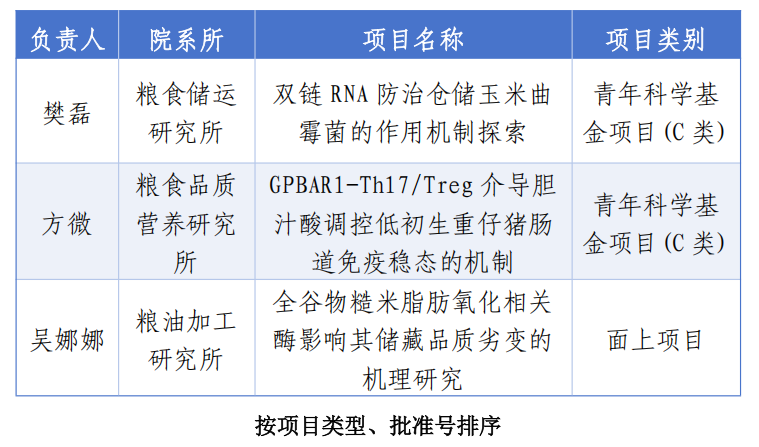 8月27日,國家自然科學基金委員會公布2025年國家自然科學基金集中接收申請項目評審結果,國家糧食和物資儲備局科學研究院3個項目獲得基金資助,其中面上項目1項,青年科學基金項目(C類)項目2項。